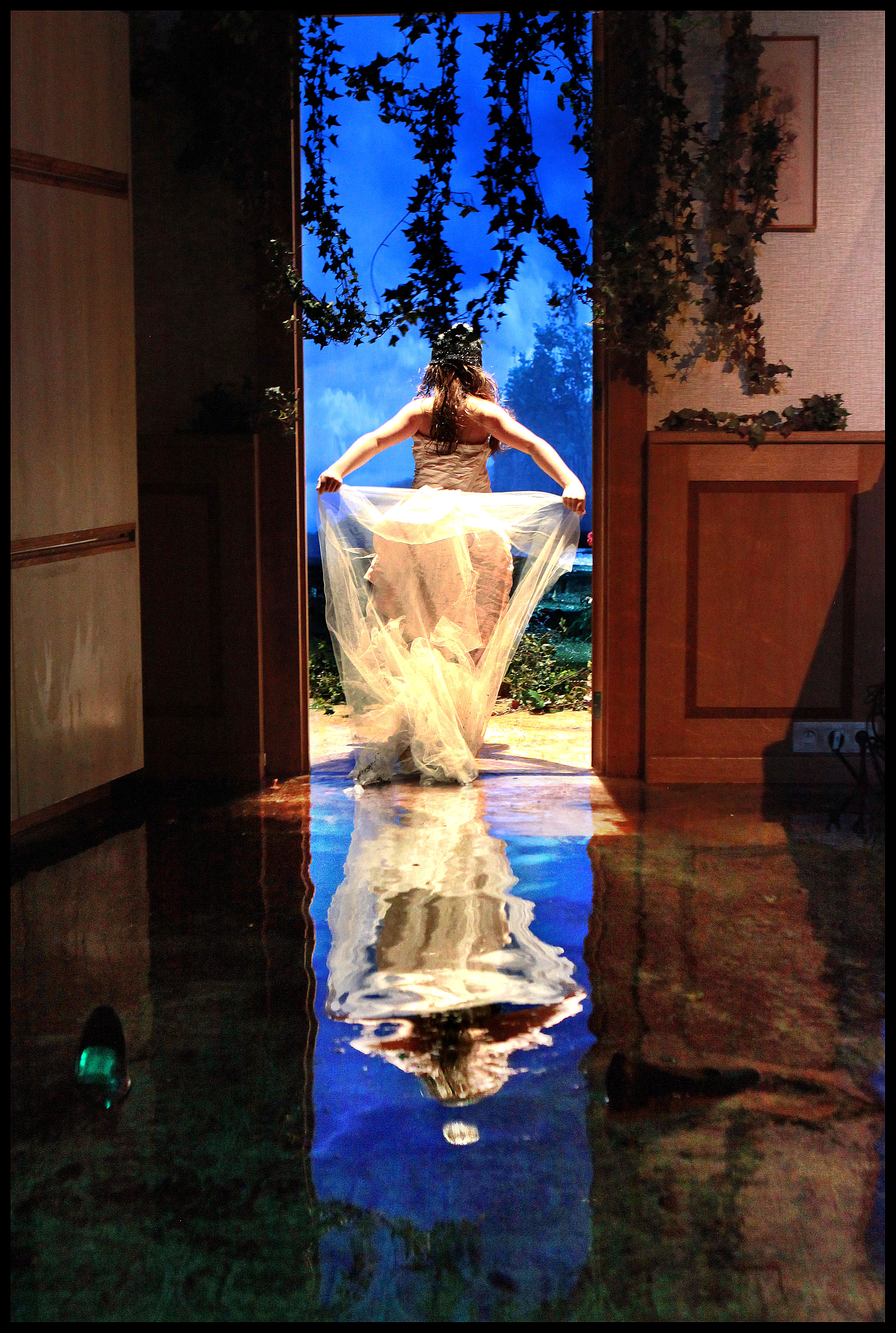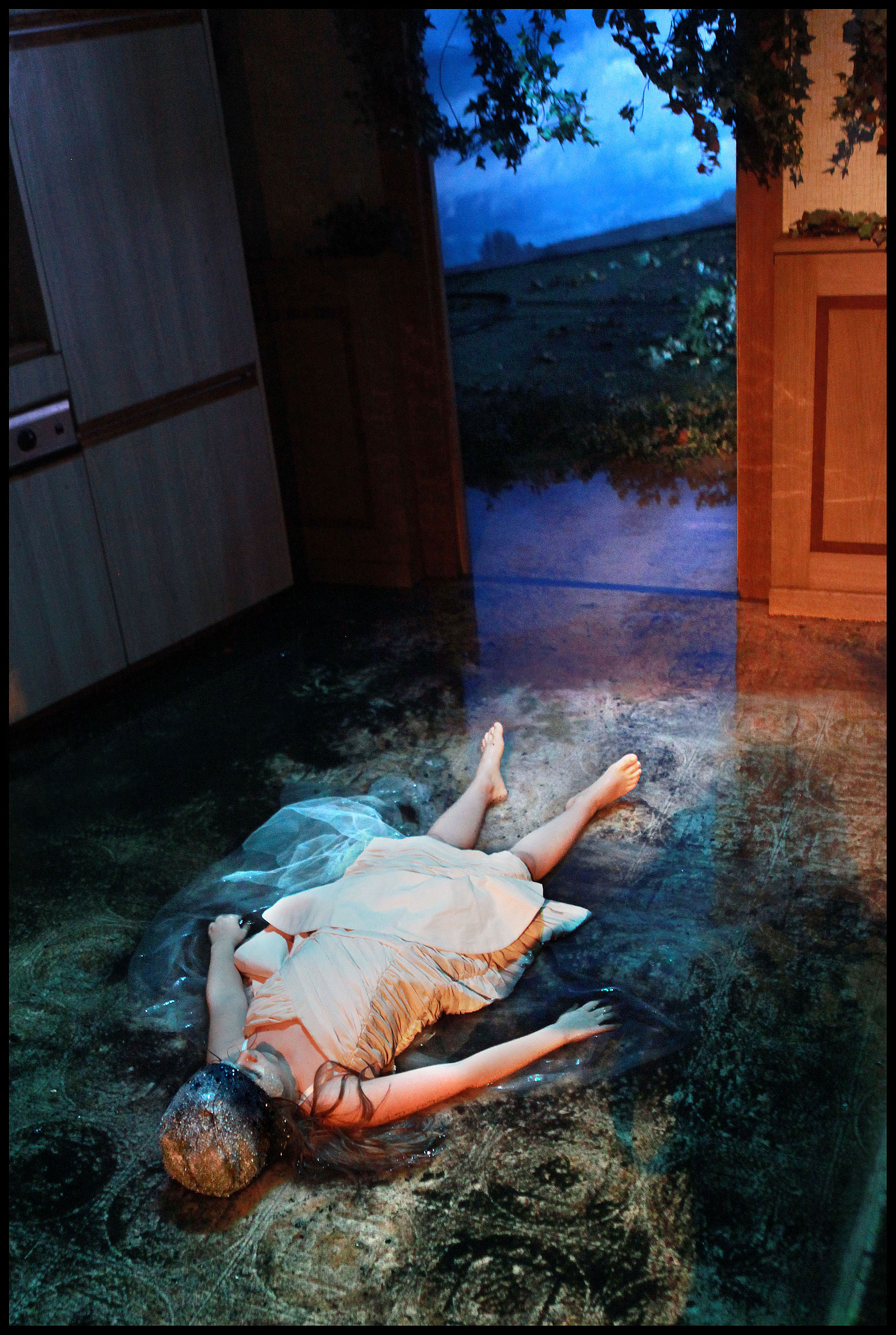 In a long, gradual movement, nature invades the house. Creepers climb along the walls, ferns take over the furniture, grass covers the living room floor. Soon, water starts coming into the kitchen. Nature takes over, and the family fights to survive, against a movement initiated by the child. The aesthetics move towards the imaginary. Words give way to signals. A mutation is underway: humans are becoming fish, an important recurrent motif of the story. The circular movement, the line shared by the trajectories of the different characters, is broken. In this new world, nothing goes round in circles.