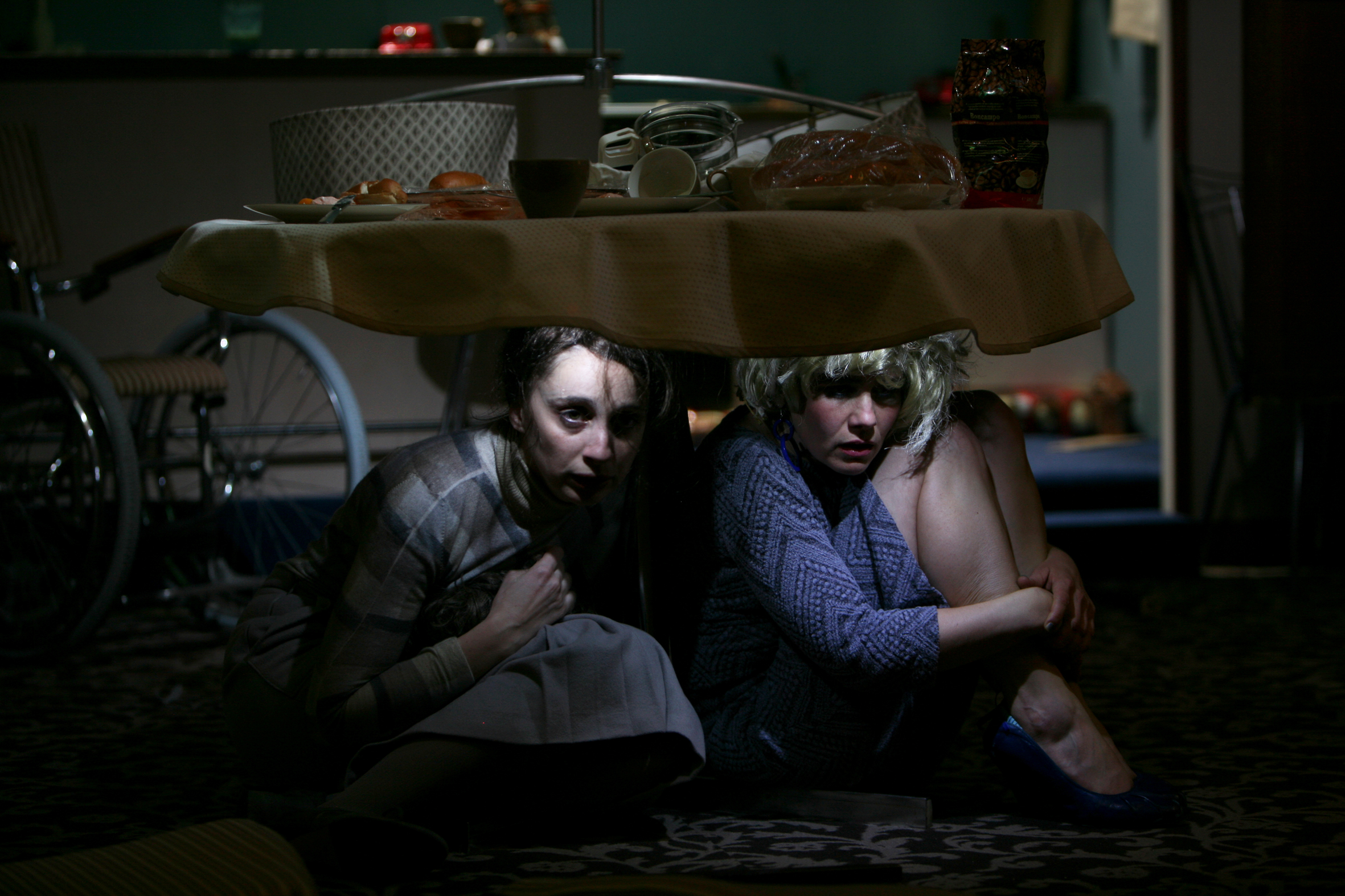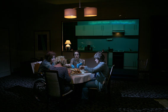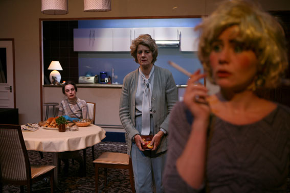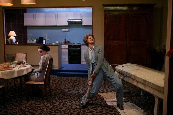 “Every time I come to see something at Vidy, it’s good!” Alright, coming out of (Self) service, this thought is flattering for the theatre by the water in Lausanne, but it is justified for the explosive new piece by the young Belgian director Anne-Cécile Vandalem. A fascinating, burlesque, morbid piece of art, (Self) service plays with sound and with meaning, and invites the audience into the intimate world of a strange family, exclusively made up of women.